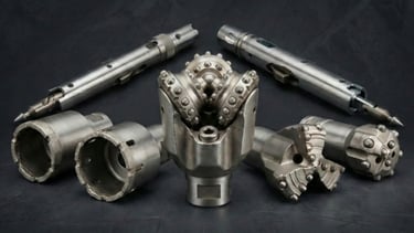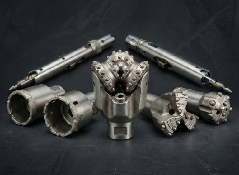 Berbagai jenis mata bor (Diamond Bits, PDC, Tricone) untuk segala formasi batuan. Dirancang untuk penetration rate tinggi dan umur pakai yang lebih panjang.